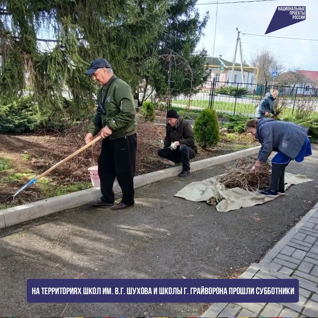 Грайворонский округ не исключение. На территориях школ им. В.Г. Шухова и школы г. Грайворона прошли субботники. Сотрудники школ дружно потрудились: убрали прошлогоднюю листву и мусор, привели в порядок кустарники, провели весеннюю обрезку деревьев и побелку стволов.