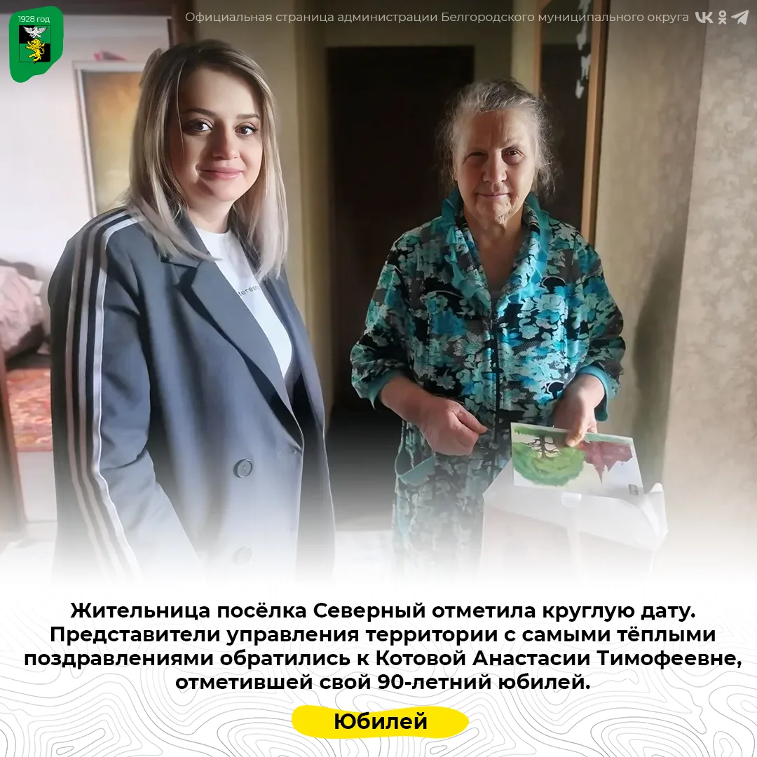 Представители управления территории с самыми тёплыми поздравлениями обратились к Котовой Анастасии Тимофеевне, отметившей свой 90-летний юбилей.