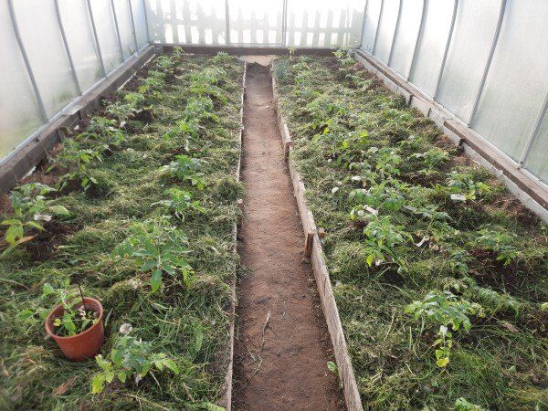 - Повышение влажности воздуха, установив ёмкости с водой между грядками.