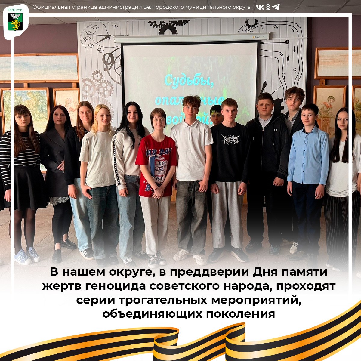 В нашем округе, в преддверии Дня памяти жертв геноцида советского народа, проходят серии трогательных мероприятий, объединяющих поколения