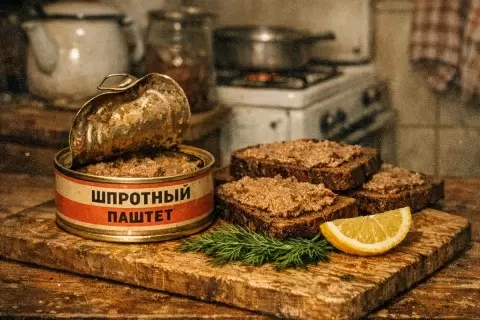 На вершине иерархии консервов советских времен находились шпроты в масле, ассоциировавшиеся с праздниками и особенными моментами. Но рядом с ними существовал и более доступный, но не менее почитаемый продукт — паштет «Шпротный». Если целые шпроты символизировали роскошь, то паштет стал символом простоты и доступности, сохраняя в себе характерный копченый вкус, который можно было наслаждаться в любое время.