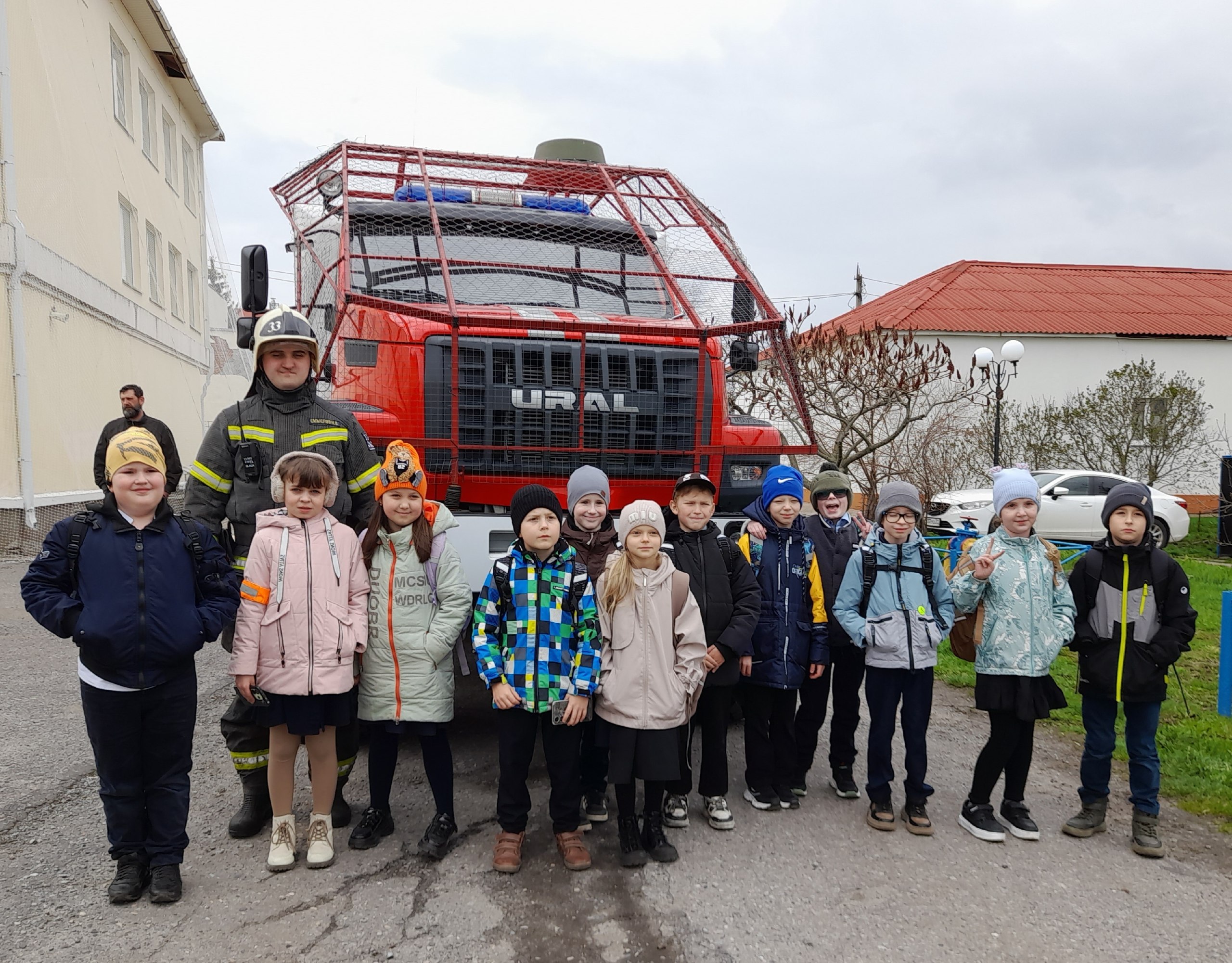 Особый интерес у школьников вызвало знакомство с пожарной техникой, пожарно-техническим вооружением и средствами пожаротушения. Ребята с удовольствием посидели в пожарном автомобиле, примерили каски и узнали, как называются и для чего служат различные инструменты.