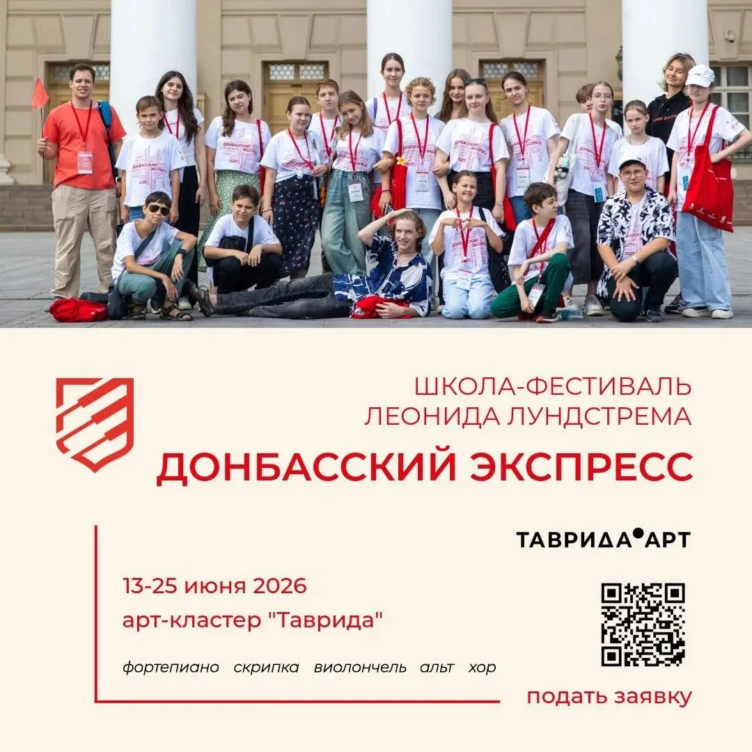 учащихся музыкальных учреждений в возрасте от 14 до 25 лет по направлениям фортепиано, скрипка, альт, виолончель и хор принять участие в школе-фестивале «Донбасский экспресс - 2026».