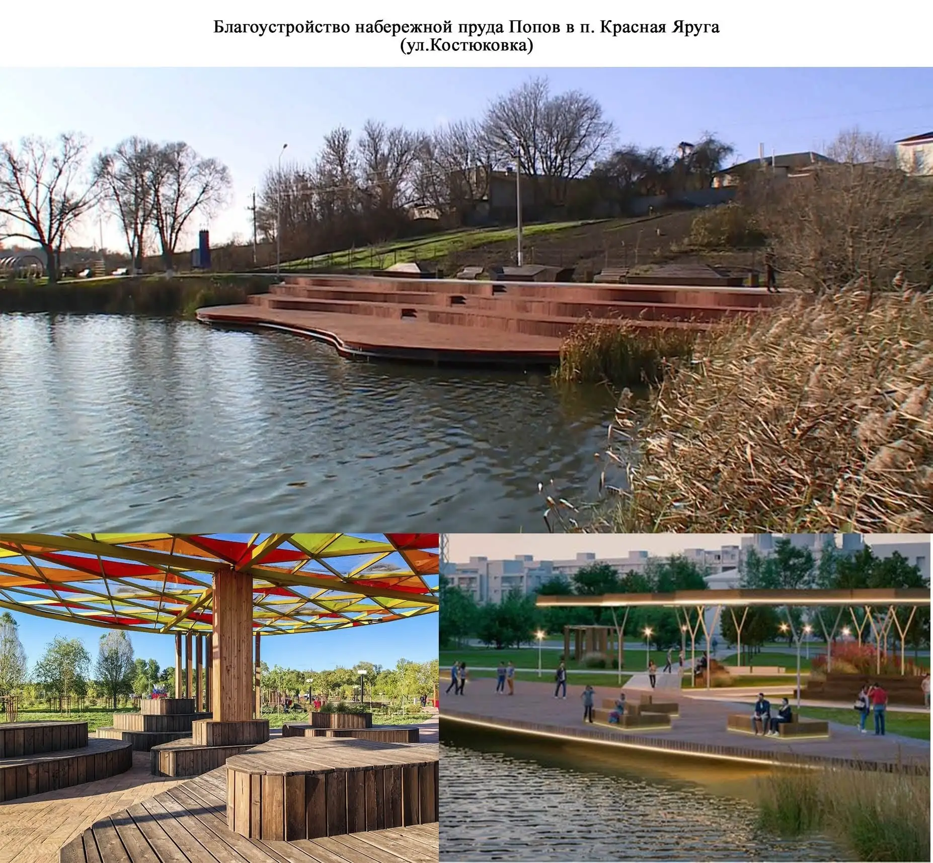 На рейтинговое голосование вынесены четыре дизайн-проекта набережной пруда Попов в посёлке Красная Яруга, претендующих на реализацию в 2027 году. Два из них посвящены благоустройству набережной со стороны улицы Костюковка, остальные проекты — территории набережной по улице Театральная. Проекты включают комплексное улучшение зон отдыха: установку современного освещения и теневых навесов, строительство пешеходных дорожек, беседки на воде и пирса. Также планируется создание зоны отдыха с шезлонгами, детской игровой площадки и парковки. Важной частью работ станет озеленение — высадка новых деревьев, кустарников и цветочных композиций.