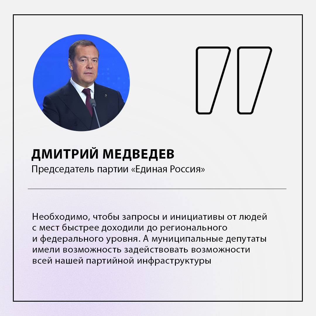 Прошедший год в партии «Единая Россия» был объявлен Годом муниципального депутата. Об этом напомнил председатель партии Дмитрий Медведев на форуме «Малая Родина — Сила России», который проходит по поручению Президента России Владимира Путина.