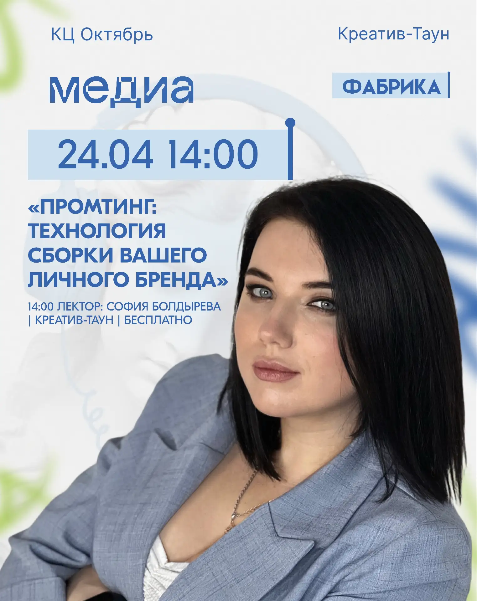 14:00 | «Промтинг: технология сборки вашего личного бренда» Разберёмся, из чего складывается личный бренд, как работает «закон пустоты» и сарафанное радио, научимся грамотно составлять промты