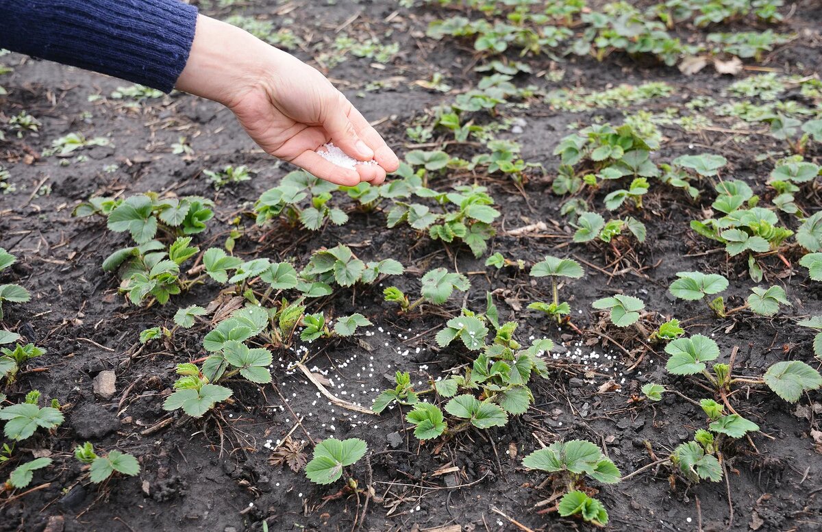 После уборки необходимо провести первую весеннюю подкормку. Клубника нуждается в питательных веществах, особенно в азоте, который можно обеспечить органическими удобрениями, такими как перепревший навоз или компост. Важно использовать правильные пропорции при внесении. А также, перед внесением любых удобрений стоит предварительно пролить грядки водой, чтобы обеспечить равномерное распределение.