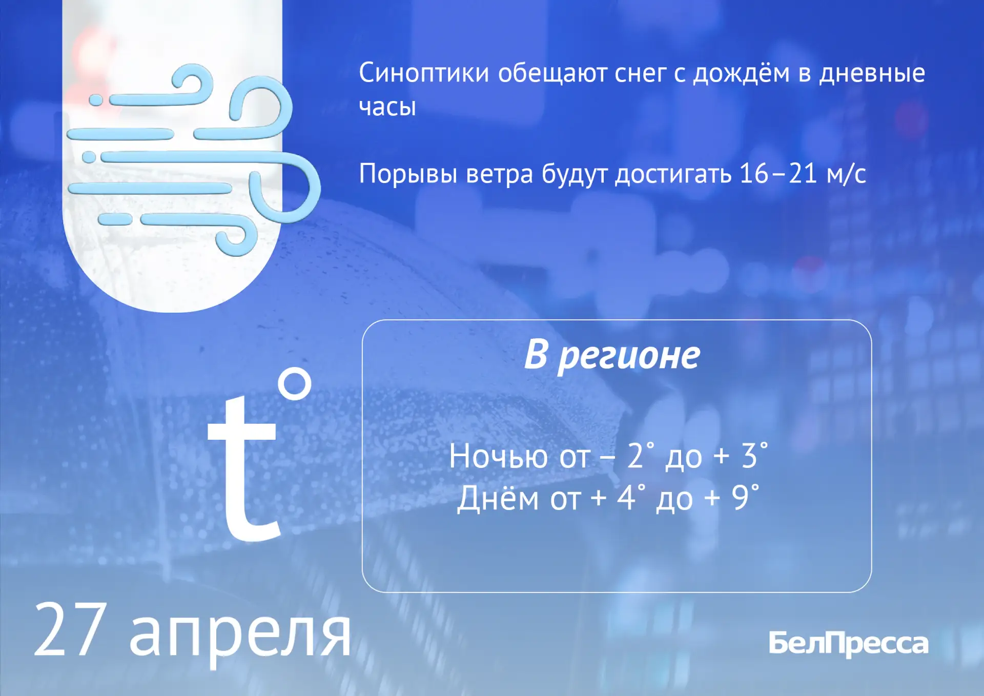 27 апреля в Белгородской области резко похолодает. Днём температурный максимум составит +9 градусов.