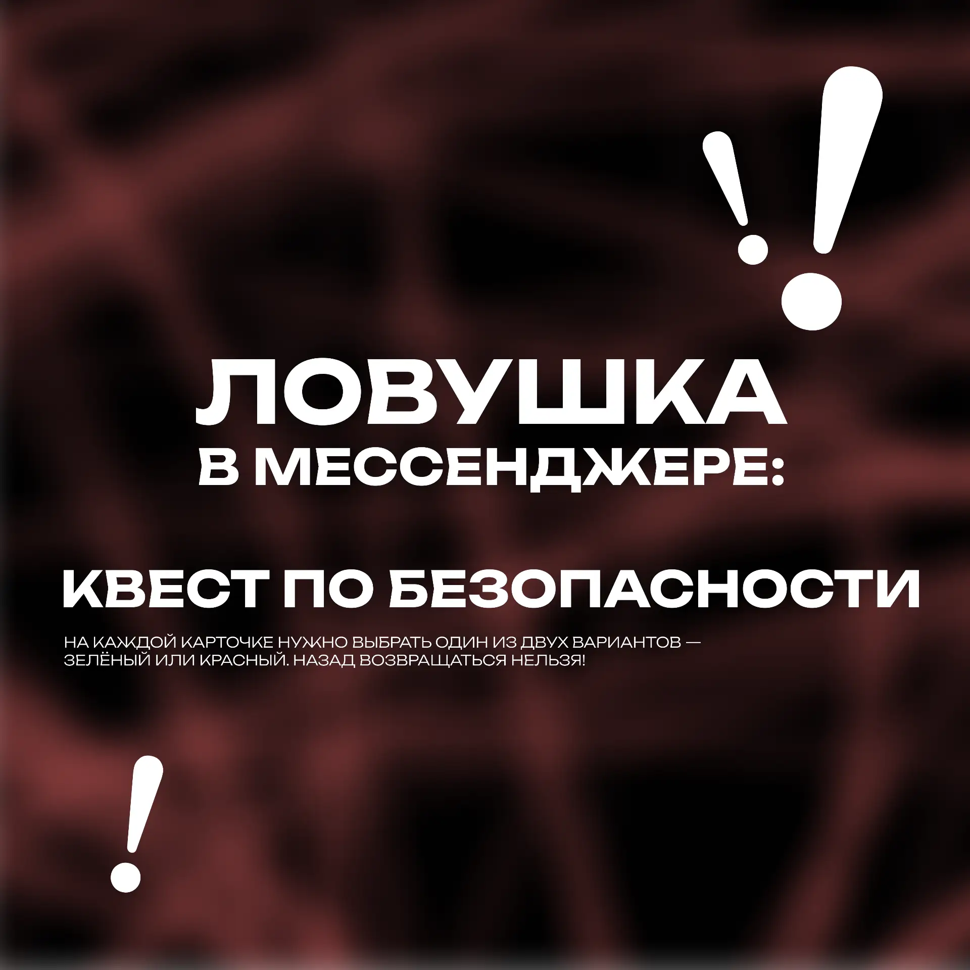 Перед тобой виртуальный квест. На каждой карточке изображён фрагмент диалога с неизвестным абонентом и два решения с вариантами ответов «А» и «Б». Твоя задача — определить, какой из них безопасный.
