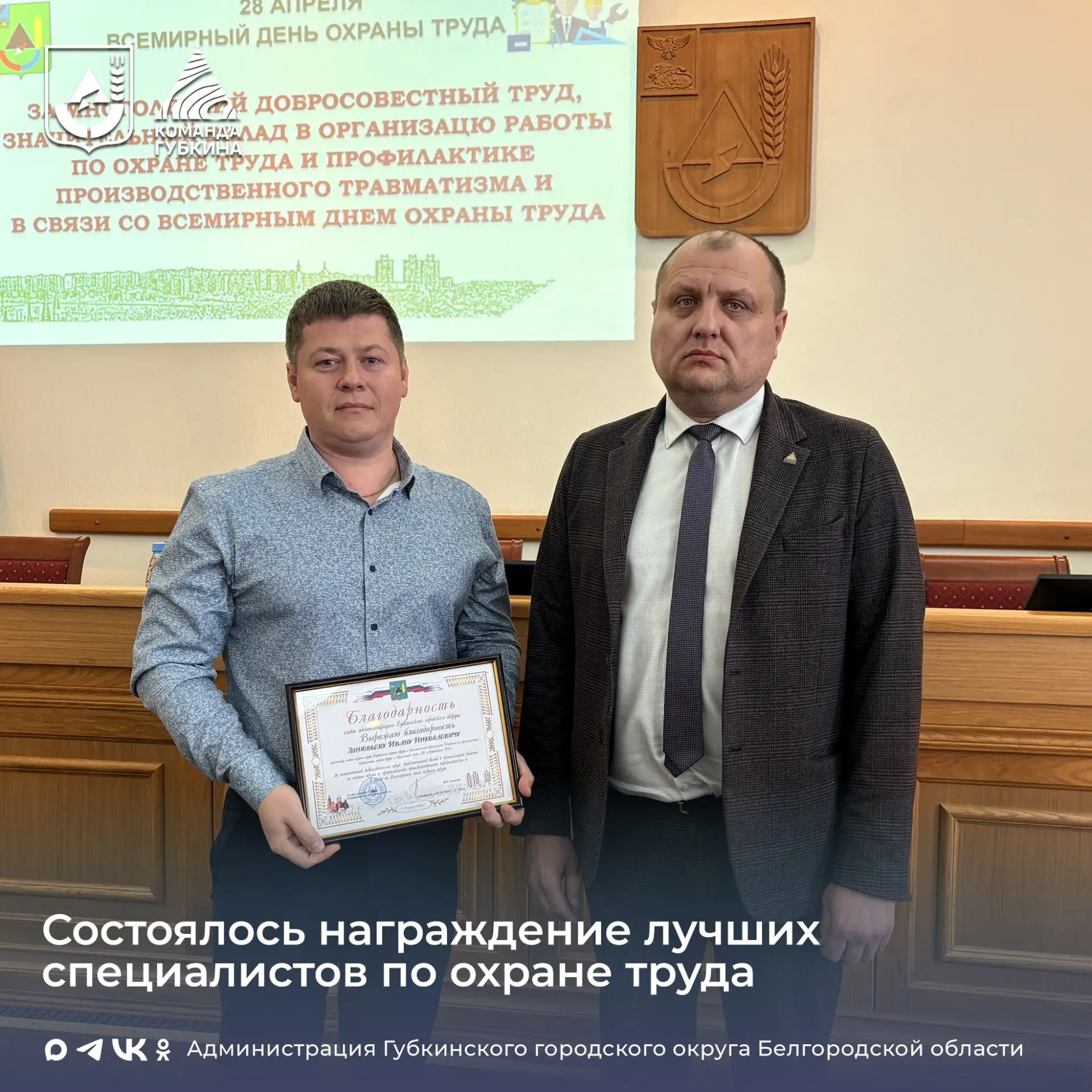 Накануне Всемирного дня охраны труда (28 апреля) в администрации Губкинского городского округа состоялось межведомственное совещание, посвященное теме: «Благоприятная психосоциальная рабочая среда: путь к процветанию работников и сильной организации».