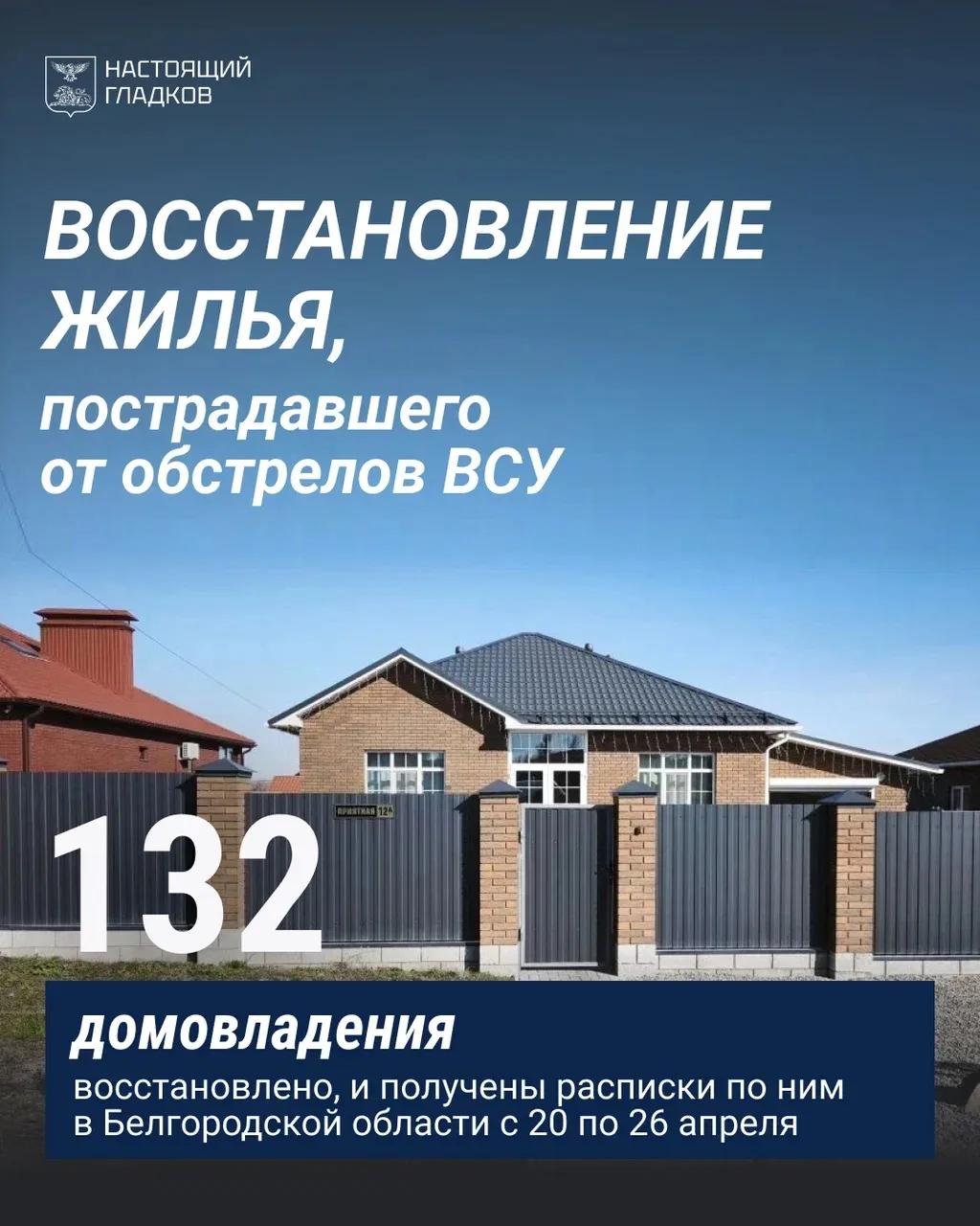 Всего с начала СВО в регионе поврежден 54 771 объект, и за это же время восстановлено 49 100 домов и квартир.