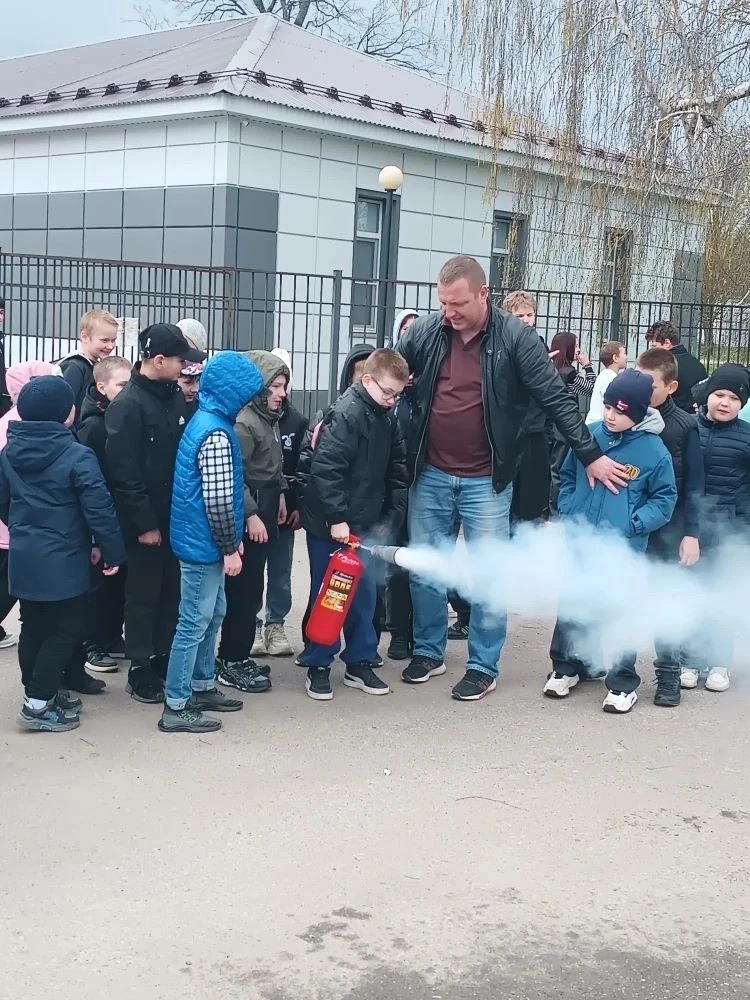 В рамках практической части председатель районного отделения ВДПО Репин Д.В. продемонстрировал правильное использование огнетушителя, а также объяснил различия между типами огнетушителей и сферу их применения в зависимости от характера возгорания. Ученики смогли лично примерить защитное снаряжение пожарного.