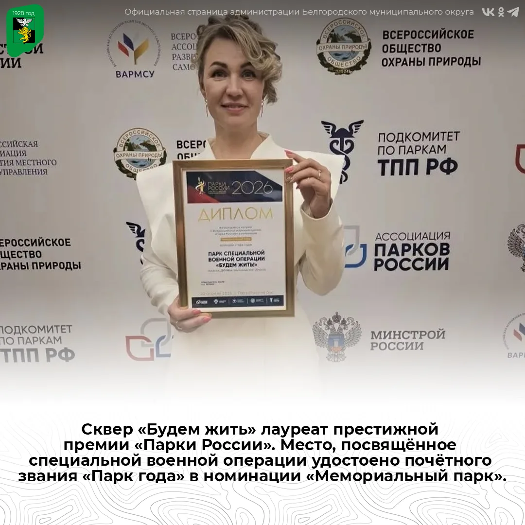 Сквер «Будем жить» лауреат престижной премии «Парки России»