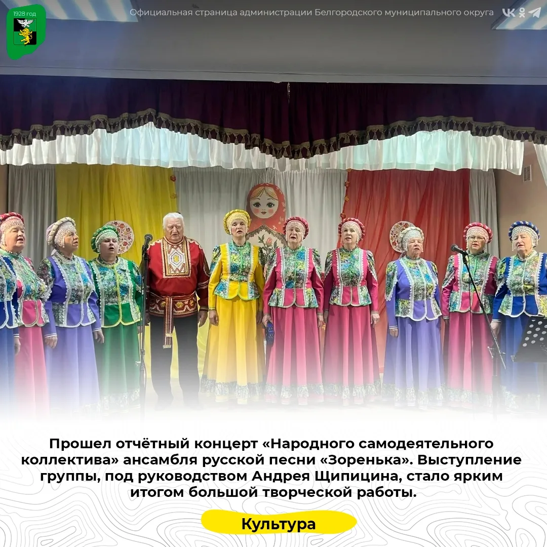 Прошел отчётный концерт «Народного самодеятельного коллектива» ансамбля русской песни «Зоренька»