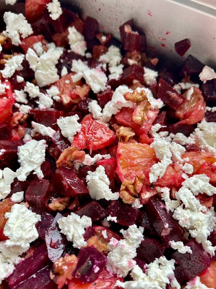 Представляем вашему вниманию изысканный и легкий салат, сочетающий в себе свеклу, апельсин, фету и грецкие орехи. Это идеальное блюдо для теплого времени года, которое можно быстро приготовить в двух вариантах: на гриле и без. Подходящий как для уютного ужина, так и для праздничного стола.