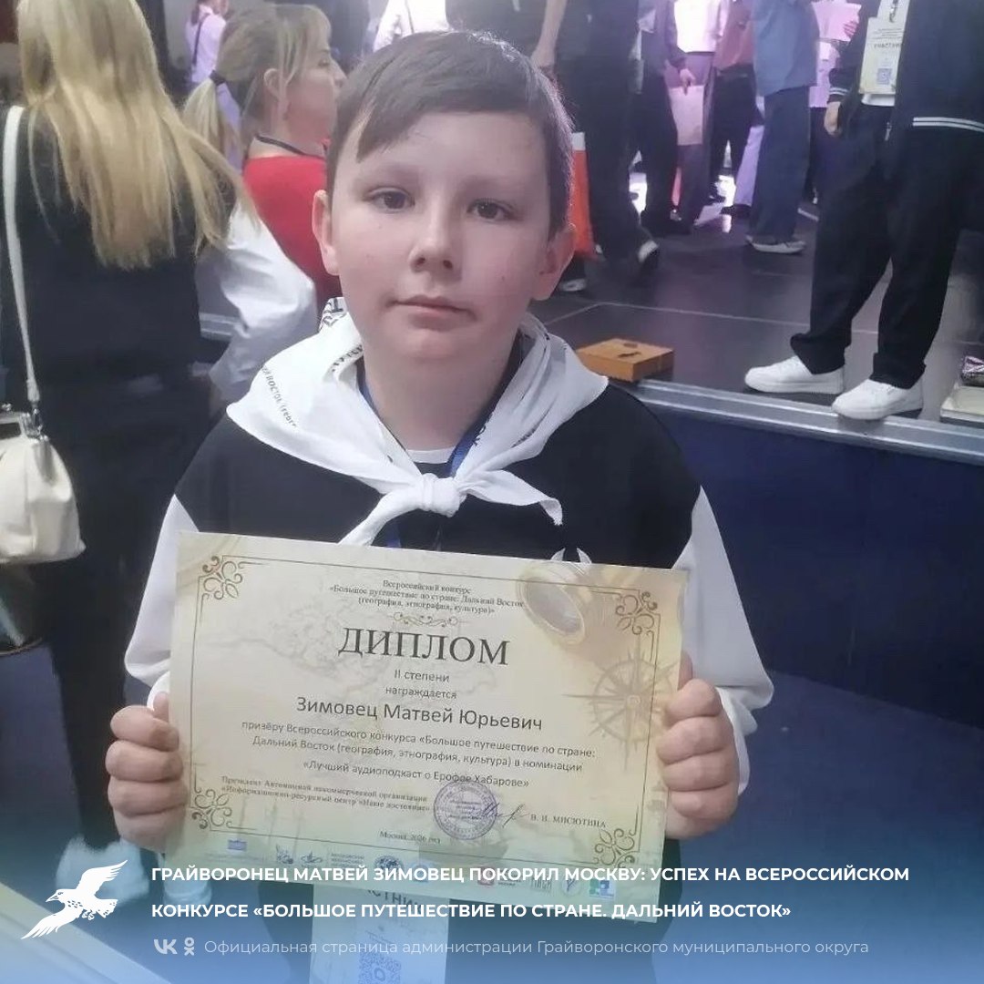 Грайворонец Матвей Зимовец покорил Москву: успех на Всероссийском конкурсе «Большое путешествие по стране. Дальний Восток»