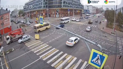 Девушка перебегала дорогу на красный свет на перекрёстке Гражданского проспекта и улицы Белгородского полка.