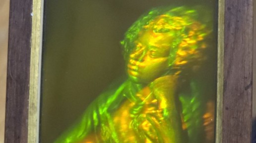 Голограмма - портрет поэта в лицейские годы. Юный Пушкин изображён сидящим за столом.