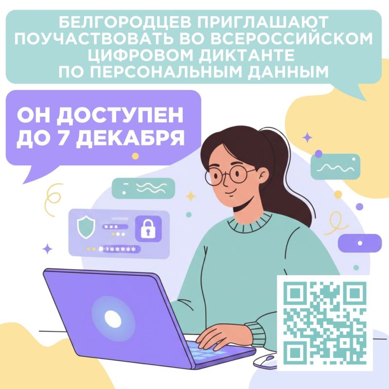 Белгородский Белгородских школьников, взрослых, пожилых граждан и всех, кто пользуется интернетом, приглашают поучаствовать во Всероссийском цифровом диктанте: https://clck.ru/36oeqqОн состоит из 25 вопросов, на которые у вас будет 40 минут. После завершения...