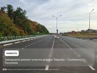 В Белгородском районе отремонтировали участок объездной дороги Таврово – Соломино – Разумное протяжённостью 3 км, который проходит между селами Таврово и Соломино. Работы выполнены компанией «Автострада».Рабочие здесь обновили дорожное...