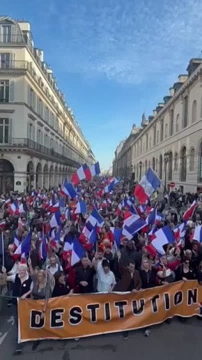 Акция организована по инициативе партии "Патриоты". "Среди невероятного леса флагов Франции в этот момент в Париже тысячи и тысячи французов кричат "Макрон, уходи!" Он должен уйти!" - написал в соцсети X лидер...